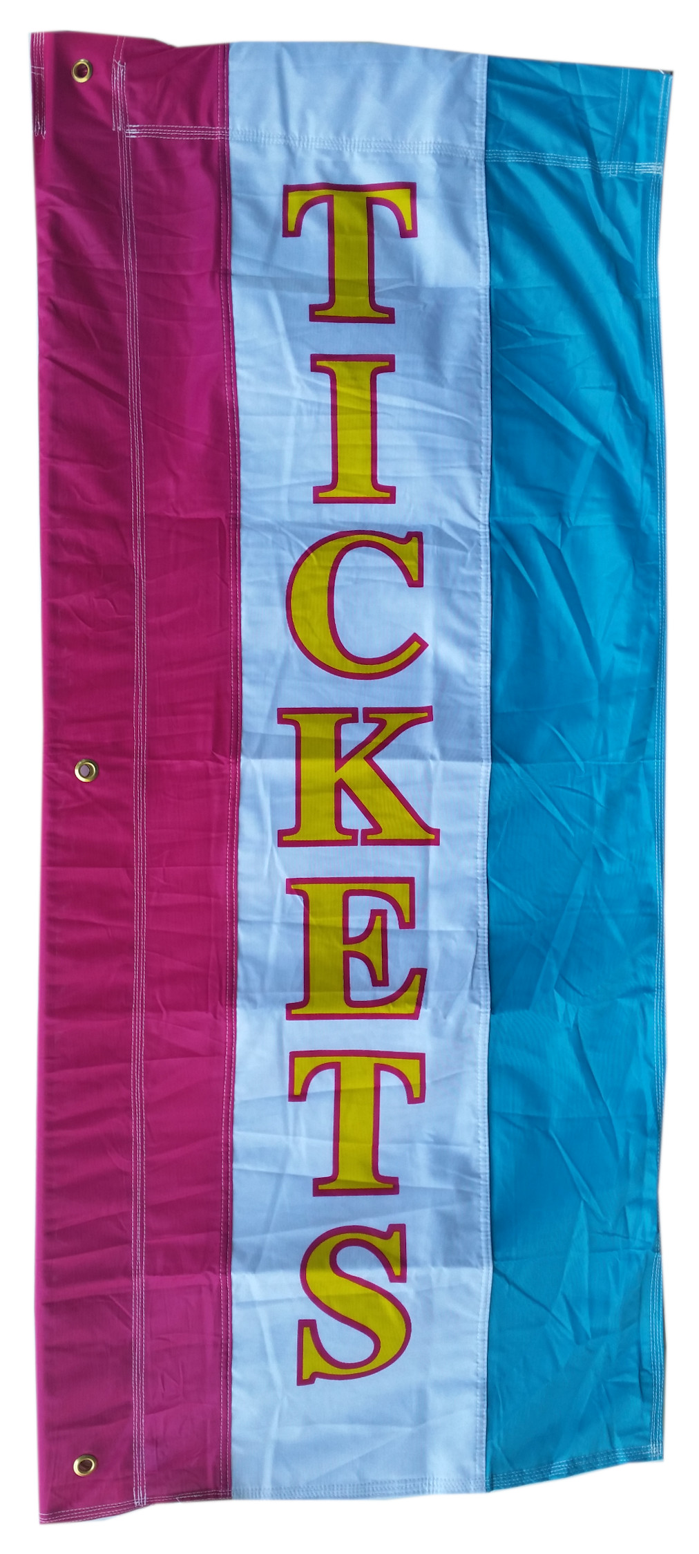 Designed to last, these colorful flags are printed on durable DuPont U.V. protected polyester, each flag has brass grommets for hanging, many have dual pole sleeves allowing optimum visibility when no breeze is present. Concession flags are all double sided eliminating any shadows and have dancing streamers to match.